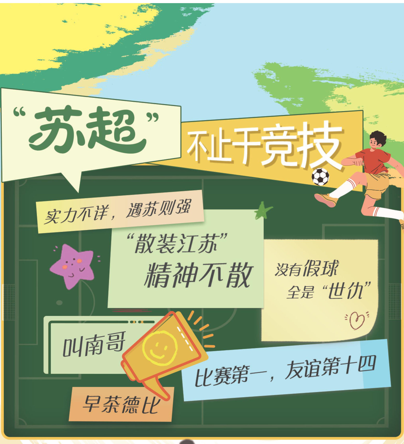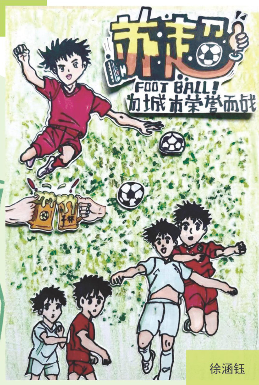初中生眼中的“苏超”是什么样的?的同学们用自己手中的画笔描摹出“苏超”印在少年人眼中的模样一十三支球队为了各自的城市荣誉而战,却又像一股拧紧的绳子,展现了执着与坚毅的拼搏精神,诠释着和而不同、欣欣向荣的城市文化。