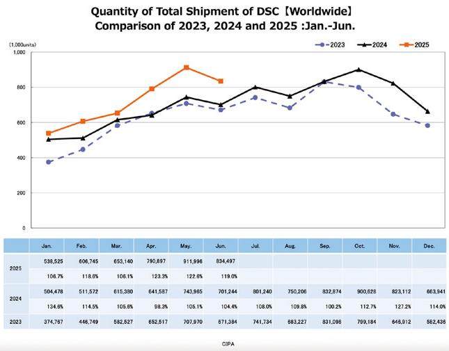 2025年上半年,CIPA(日本相机影像产品协会)发布的统计数据显示,全球相机市场在经历数年的起伏后迎来了增长。而在这一轮复苏浪潮中,中国市场的表现尤为亮眼——首次超越美洲,成为全球最大的可换镜头相机市场,占据超过30%的份额。这一转变不仅反映出中国消费者对影像设备需求的迅猛增长,也意味着全球相机行业的重心正在发生历史性转移。 出货量回升:全球市场回暖迹象明显 CIPA的最新数据显示,2025