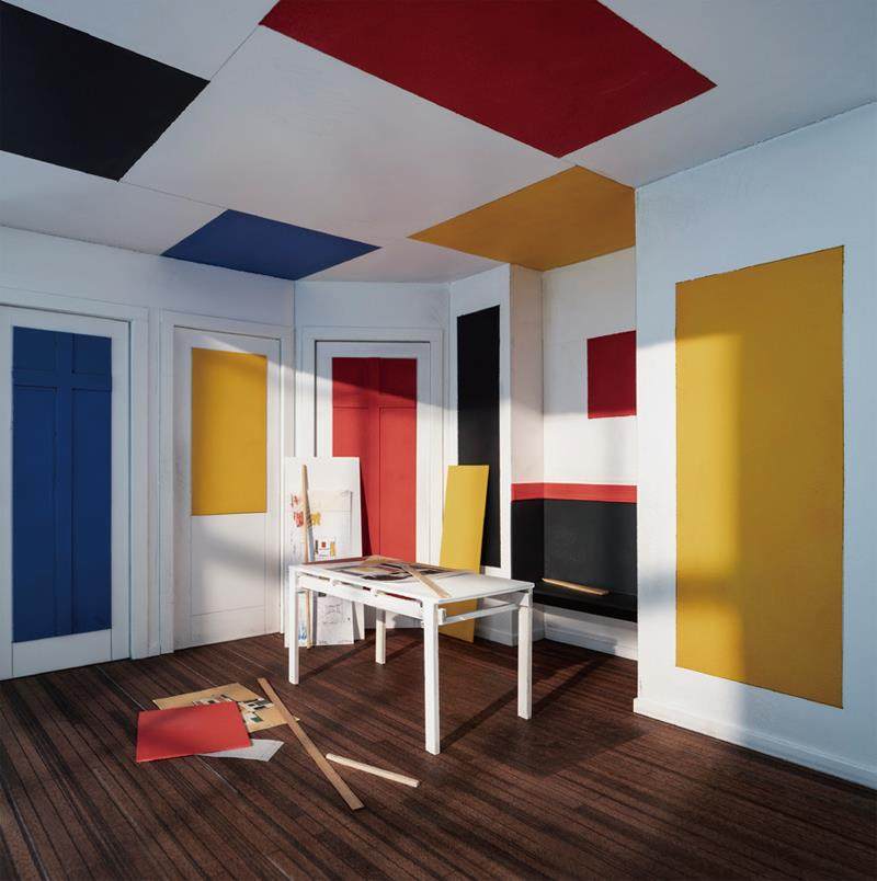 ©Emilio Pemjean洛托法戈斯国度 3。卡特韦克安泽巴特·德·赖特之屋内室的色彩方案。范·杜斯堡。毁于1919年材质:矿物颜料喷墨数码印刷,Hahnemühle Photo Rag 棉纸,Dibon(铝复合板),玻璃及框架2024年,尺寸:105厘米×105厘米 ©Emilio Pemjean洛托法戈斯国度 1。皮特·蒙德里安的工作室。纽约东59街15号。蒙德里安去世后被拆除。1944