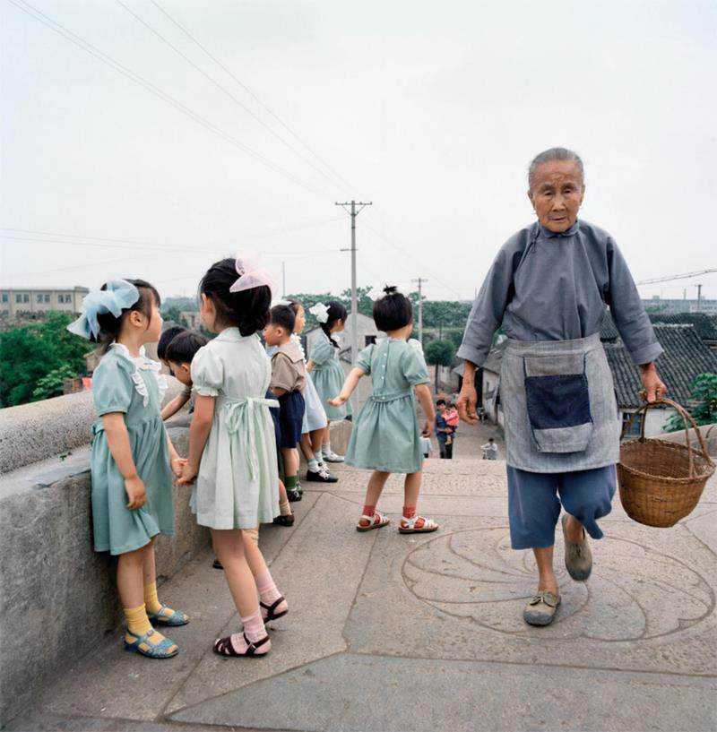 1981年至1982年,秋山亮二多次到访中国,用樱花牌胶卷拍摄了近8000张彩色照片,以纯真的《你好小朋友》《光景宛如昨》《往事成追忆》三部曲与别册《遇见》,带领我们重返美好童年。最新摄影集《中国 1981—1982》中的手写招牌、红色公用电话亭、骑着二八自行车飞驰的青年、身着蓝色中山装缓步而行的人们,秋山亮二与青艸堂不再把目光局限于“小朋友”,而是用118张底片还原激情澎湃的20世纪80年代。