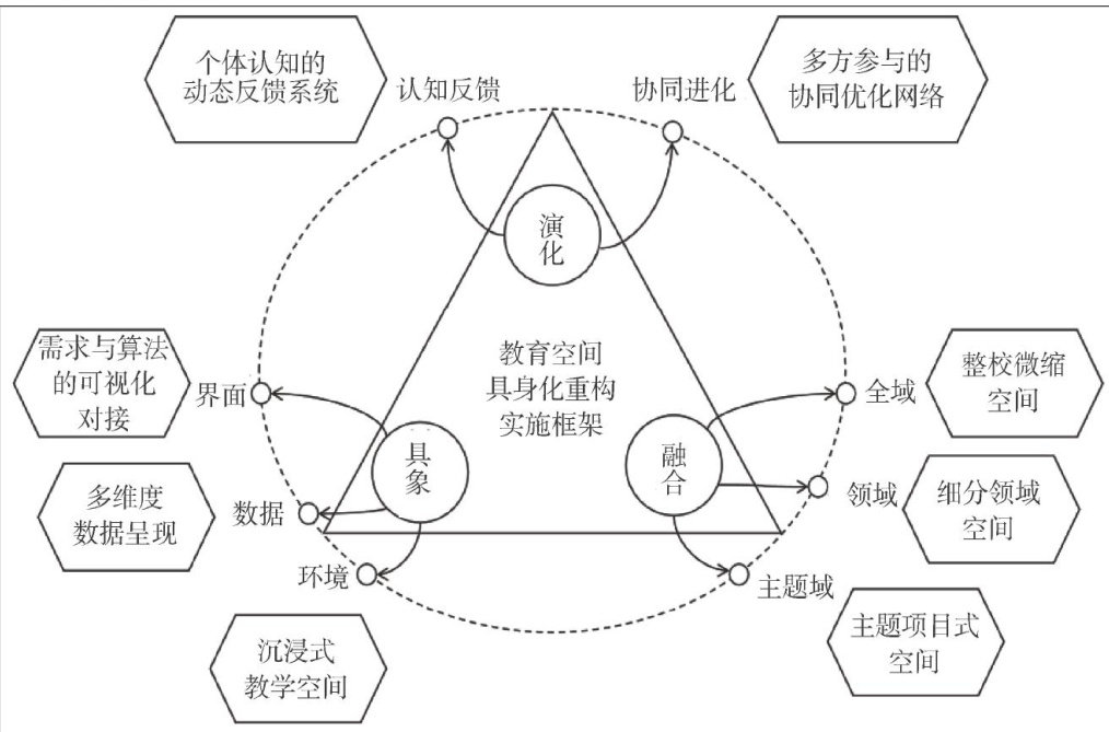 摘要:生成式人工智能技术驱动教育空间向虚实融合转型过程中,引发了身体活动空间压缩、认知与身体经验解耦、人机关系异化等深层问题。该研究立足具身认知理论,系统分析技术赋能下教育空间属性嬉变规律,构建“具象一融合—演化”三阶重构框架,通过技术具象化呈现、教学功能耦合及生态动态演化路径,破解生成式人工智能技术应用引发的认知离身化困境。基于内容分析法对深圳市34所学校的典型案例进行编码与归纳分析,实证研究表明该框架在技术感知转化、教学功能整合与生态进化维度具有较好的成效,验证了在生成式人工智能时代,教育空间具身化重构对重塑教育主体性、优化人机协同关系的实践价值。研究突破传统认知理论的离身假设,创新性地将具身认知理论系统应用于智能教育空间设计,构建起技术赋能与身体在场相协调的实施框架,为生成式人工智能时代教育空间的科学设计提供了可复制的实施路径。