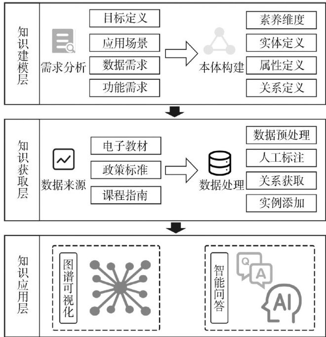摘要:人工智能重构教育系统背景下,构建中小学人工智能课程知识图谱是智能化人才培养的重要举措。然而,现有研究多集中于高等教育领域,缺乏与核心素养目标的深度融合,难以满足中小学人工智能教育需求。为此,该文以人工智能素养框架为指导,依托广州市中小学人工智能课程教材,采用自顶向下方法构建面向中小学的课程知识图谱。为验证其有效性,研发课程知识图谱增强的大模型问答系统,并通过人工评估测试系统性能。研究结果表明,课程知识图谱通过结构化知识注入机制,显著提升了大语言模型在人工智能素养的情感、思维、知识三个维度上的问答表现。该文通过课程知识图谱与大语言模型的融合应用,探索其在教育场景中的增益效应,实现从知识体系重构到工程实践的范式跃迁,为人工智能素养教育的规模化推广提供了理论与实践耦合的技术框架。