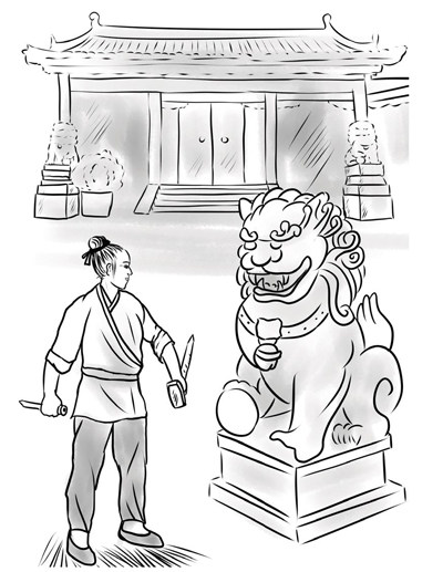 明朝嘉靖年间,江南桂树村里有一个大户姓崔,人称“崔大户”,一向喜欢显摆自己的富有。这年9月的一天,崔大户忽然觉得,如果在他家宅子的门前,摆放两只大石狮子,就会增添不少的气派。 说干就干。崔大户当即派人去雇请一位姓周的石匠,让周石匠3天后的上午,赶到崔家,开始雕琢石狮子。 周石匠住在桂树村的邻村,擅长雕琢石狮子。3天后的上午,周石匠挑着自己的工具,脚步匆匆地出了家门,往桂树村赶去。 工夫不