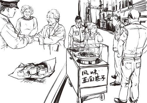 李大妈没儿没女,是个单身老太太。李大妈本来生有一男一女,可是都半路夭折了。后来她老伴又患上了严重的脑血栓,躺倒在病床上多年,待到老伴去世后,就只剩下李大妈一个人了。或许是不愿想起过去吧,李大妈一直没再找人,而是接着干起了当年老伴的行当——骑车卖豆面卷子。 豆面卷子又称豆面饽饽,相传是我国满族的传统面食。制作时将黄米以水浸泡磨面,和匀,擀成薄片,入锅蒸熟,再将黄豆炒熟磨面,均匀撒于其上,卷起后