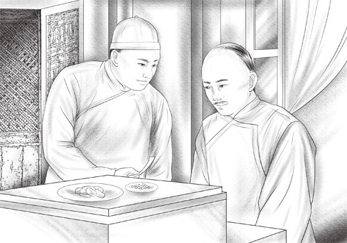 某朝某一年春天,有个秀才进京赶考。他走到离京城还有一半远的地方,见一个老头摆着一副担子,正在路边吆喝,热情地向过往行人招揽生意。秀才仔细一看,原来老人是在卖汤圆呢。此时,秀才正走得又饥又渴,便走过去,想饱餐一顿后,趁早再赶一段路。可是,当他伸手摸银钱时,才发现因路途中得病花了不少钱,口袋里现在已经没有钱了。他只好眼巴巴地红着脸望着那半锅热气腾腾的汤圆,直咽口水。 卖汤圆的老头见这情形,明白秀