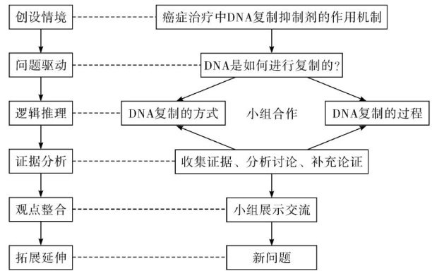 摘要:本研究采用论证探究式教学法进行“DNA的复制”一节内容的教学,利用大情境串联教学全过程,在情境中提出关键问题,构建认知冲突;通过资料分析、演绎推理以及小组合作探究等环节,促进学生深度学习,进而使学生在论证与探究的动态过程中构建系统的知识框架。