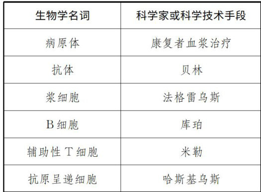 3教学过程 教师在课前准备好构建模型需要的教具,按小组数打印拼图并进行裁剪,在各拼图背面标记上与该拼图对应的科学家或科学技术手段信息(见表1)。 表1各拼图对应关系 3.1感知概念:情境导入,激发学习兴趣 教师展示社会爱心人士捐献血浆的图片,播放“康复者血浆治疗"科普视频,并提出问题:视频中爱心人士血浆中的抗体到底是如何产生并清除抗原的? 设计意图:教师将知识与社会热点结合,激发