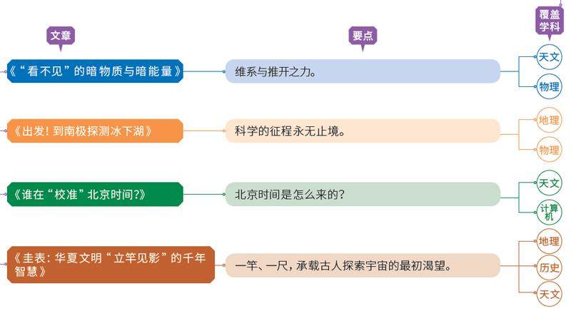 结合新课标 体验跨学科 教育部印发《义务教育课程方案和课程标准(2022年版)》,提出4个跨学科概念和13个学科核心概念以及倡导读科学家故事,学习科学家精神。 本刊携手权威科学家、一线科研工作者,紧密结合教育部新课标中的核心内容,将本期内容聚焦于数学、物理、生物、地理、历史等多个学科,并结合前沿科技进行深度剖析,引导青少年主动学科学、用科学,将科学理念、科学思维转化为行动。 告别浅薄阅读